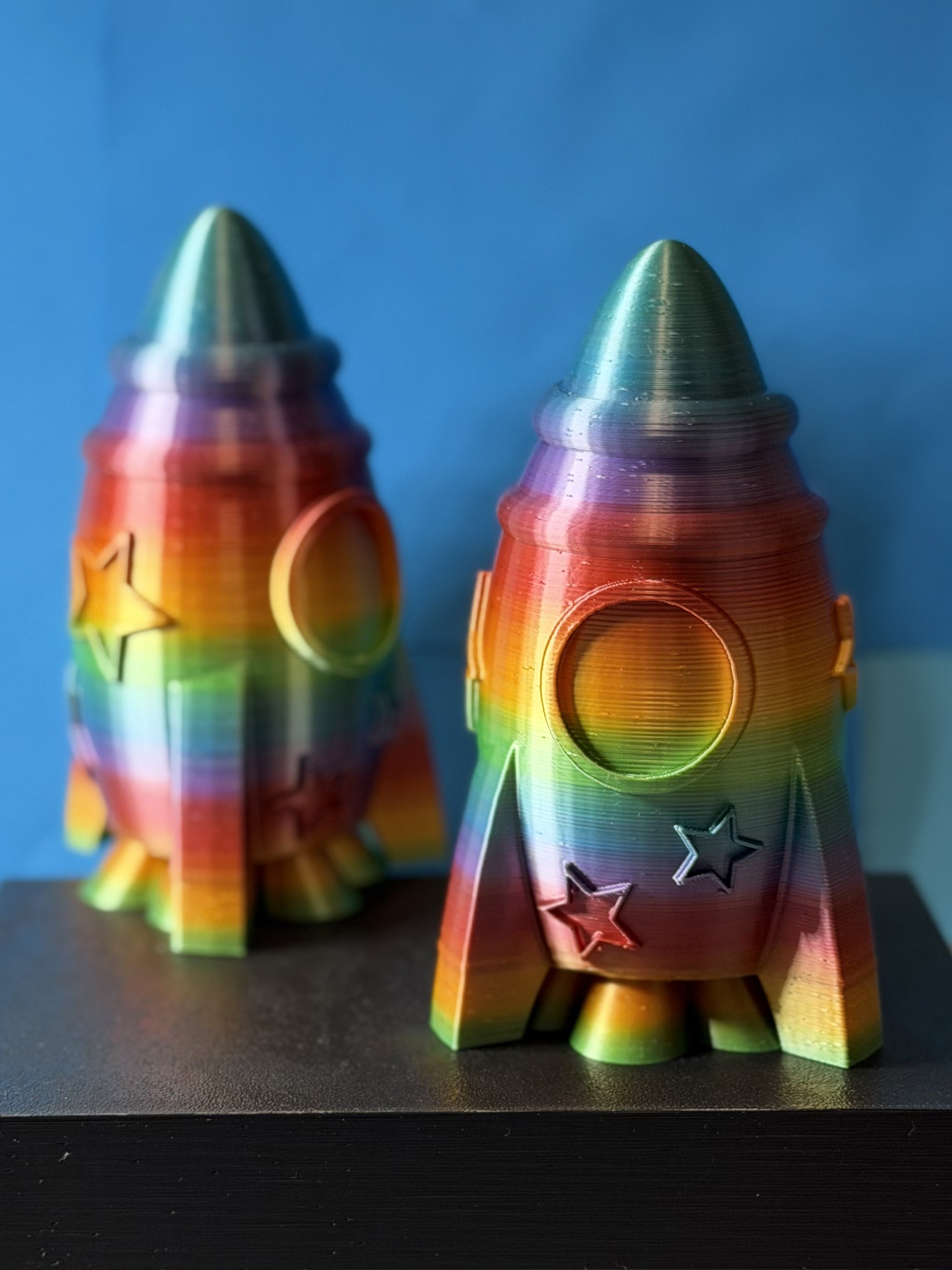 Free Download on MakerWorld: Rocket ship shakers 3D print profile by Jen posting as Plum Studio. This design was originally inspired by Stephanie Leavell’s Rocket While You Rock It movement activity, but they are useful for so much more! Jen creates these rockets with a variety of dried grains and fill levels for varying sound qualities, volumes, and sensory experiences.